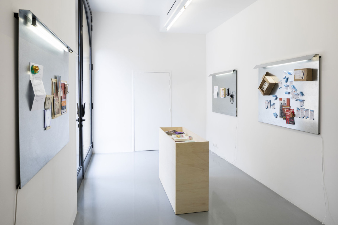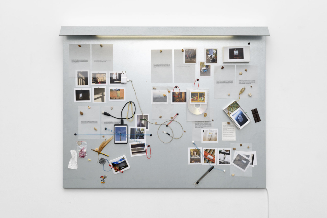 Les glissements de la fiction à celle des personnages contemporains du film renvoient à celle du livre, son époque et ses questionnements. Character se construit sur ce mouvement ténu entre l’individu et le collectif, l'intime et le politique. En creux, des objets racontent le tournage, le scénario, la vie des personnages et leur lien au livre. Journal de bord omniprésent, traces ou preuves de cette histoire, fantasmée ou vécue, le film dans le film. Les histoires se révèlent au gré des détails réalistes ou irréels. Ces collages d’objets pop et ludiques renvoient dans l’espace d’exposition les divers éléments du film, forme de mise en abîme du sujet et de sa construction.