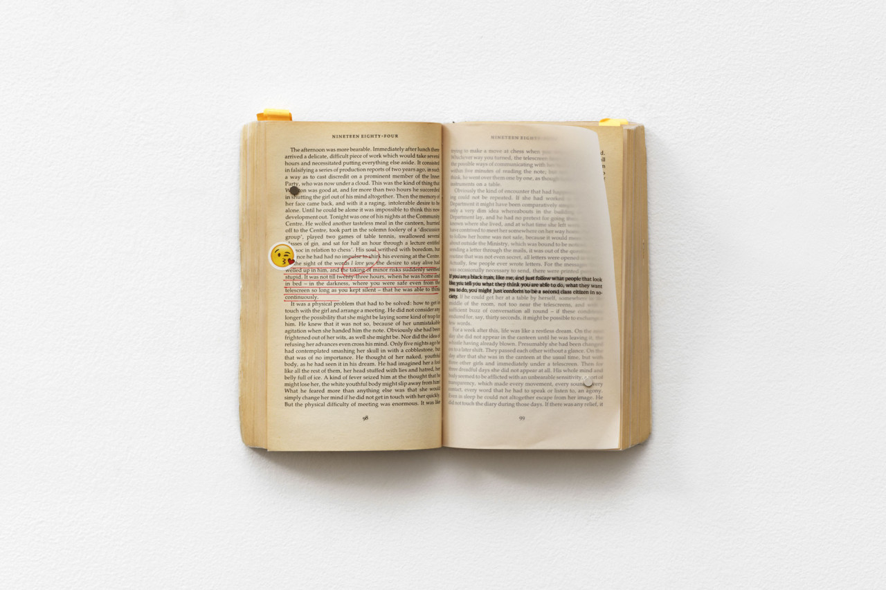 L’œuvre Character a été construite à partir d’une réflexion de l’artiste sur les personnages de romans qui fabriquent l’imaginaire collectif. Les différentes parties de l’exposition se répondent et recomposent le voyage, à la fois littéraire et sociétal, à la recherche de personnes portant le nom et prénom du héros de 1984 de George Orwell, Winston Smith en Angleterre.