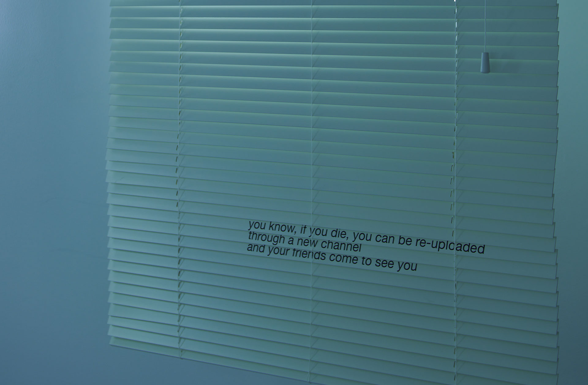 Le store vénitien est un élément que j’ai retrouvé dans la chambre des streamers. Il m’a semblé : être caché tout en observant sans être vu. Il convoque aussi tout un imaginaire du cinéma américain qui me plaît beaucoup mais renvoie également à la posture du voyeur dans laquelle nous sommes projetés en regardant ses streams de sommeil en ligne.