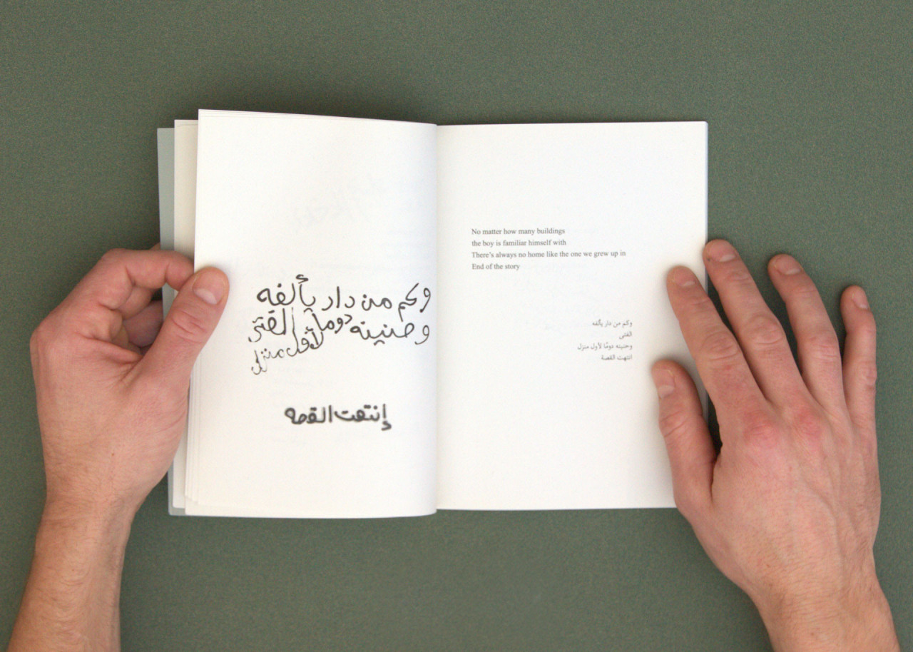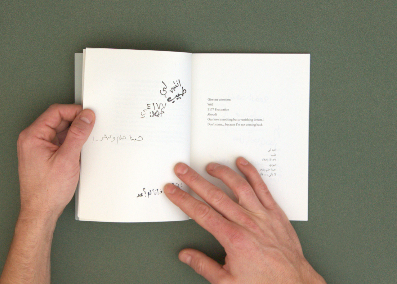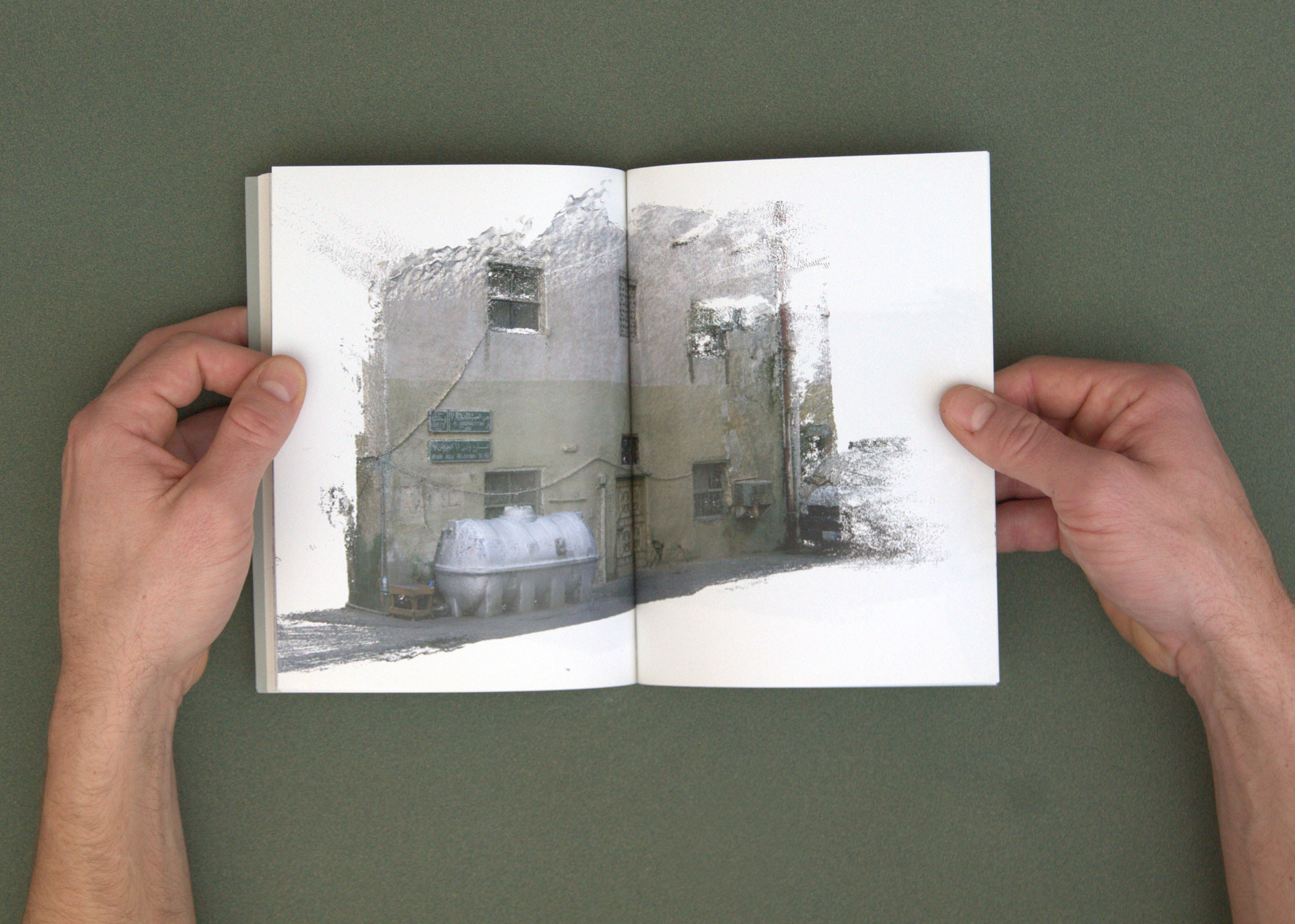 Chaque page de gauche montre ces graffitis dans leur forme brute, accompagnés de leur traduction en anglais et de leur transcription en arabe sur la page opposée. Le livret suivant contient divers fragments de photogrammétrie urbaine réalisés pendant cette même période à Djeddah et à Khaybar. Ces éléments 3D ont été utilisés pour composer la partie en image de synthèse du film.